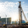 Surveyor engineer wearing safety uniform and helmet with equipme